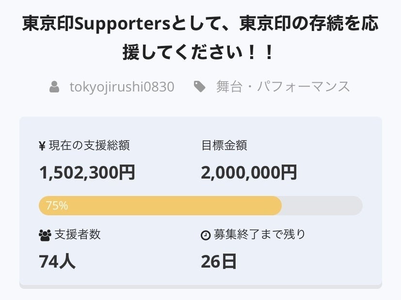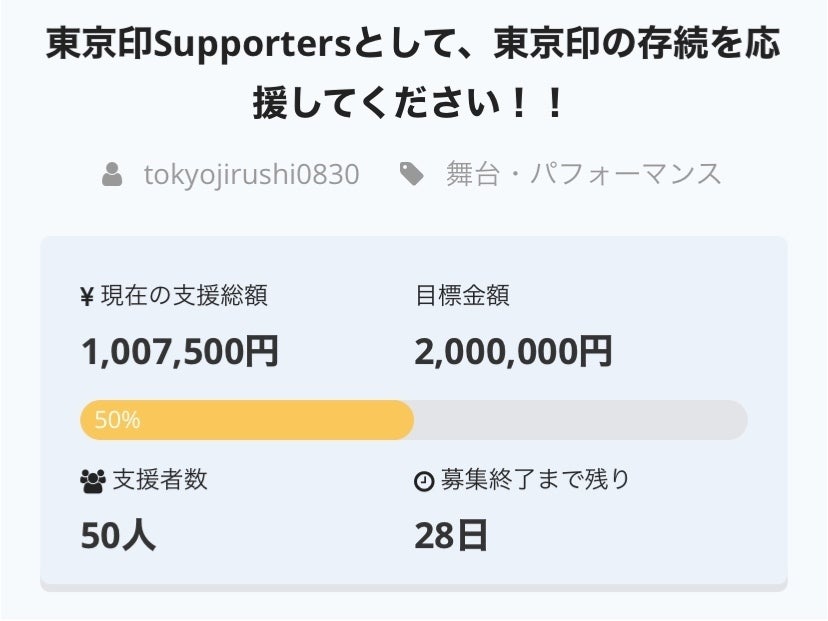 お待たせいたしました!リターン品4点を追加です!【追加5席限定!次回公演のゲネプロご招待!】 ご好評を頂き限定数に達してしまった次回公演のゲネプロご招待を、ソーシャルディスタンスを考慮した上でなんとか5席追加していただきました!これ以上は増やせません……【元東京キッドブラザースメンバー有志による撮り下ろしポートレートをウォールデコにして】既にご紹介しているウォールデコよりも小さいサイズ(A4相当)です。撮影日にこのメンバーが揃うなんて本当に奇跡でした!もうなかなかないかもしれません…あなたの青春と一緒に駆け抜けた思い出の1ページを……是非記念にどうぞ!【ここでしか手に入らない!東京印主宰 長戸勝彦描き下ろし疫病退散アマビエのイラスト入り東京印Supportersエコバッグ】 長戸画伯のアマビエはやはり人気です!ご好評につき調子に乗ってポリエステル素材のエコバッグも作ってみました!カラーはお任せください。届いてからのお楽しみ♪【東京印 夢の共演!!!藤岡弘VS陰陽師ブロマイド4枚セット】『げんせんじゃ〜!』でお馴染みの藤岡弘役 農塚誓志さんと『あの春の約束を歩き出す君のために』陰陽師役 古賀司照さんの、他では絶対に見られない超濃すぎる夢の共演写真です!長戸さん曰く「さすがの大物俳優たち!カレンダーだけには収まらない!」その一言で、急遽ブロマイド4枚セットにしてお届けすることが決定!長戸「この2人……ずっと見ていられる(笑)」更に皆様に喜んでいただけるよう企画しました。詳しくはリターンページをご覧ください。