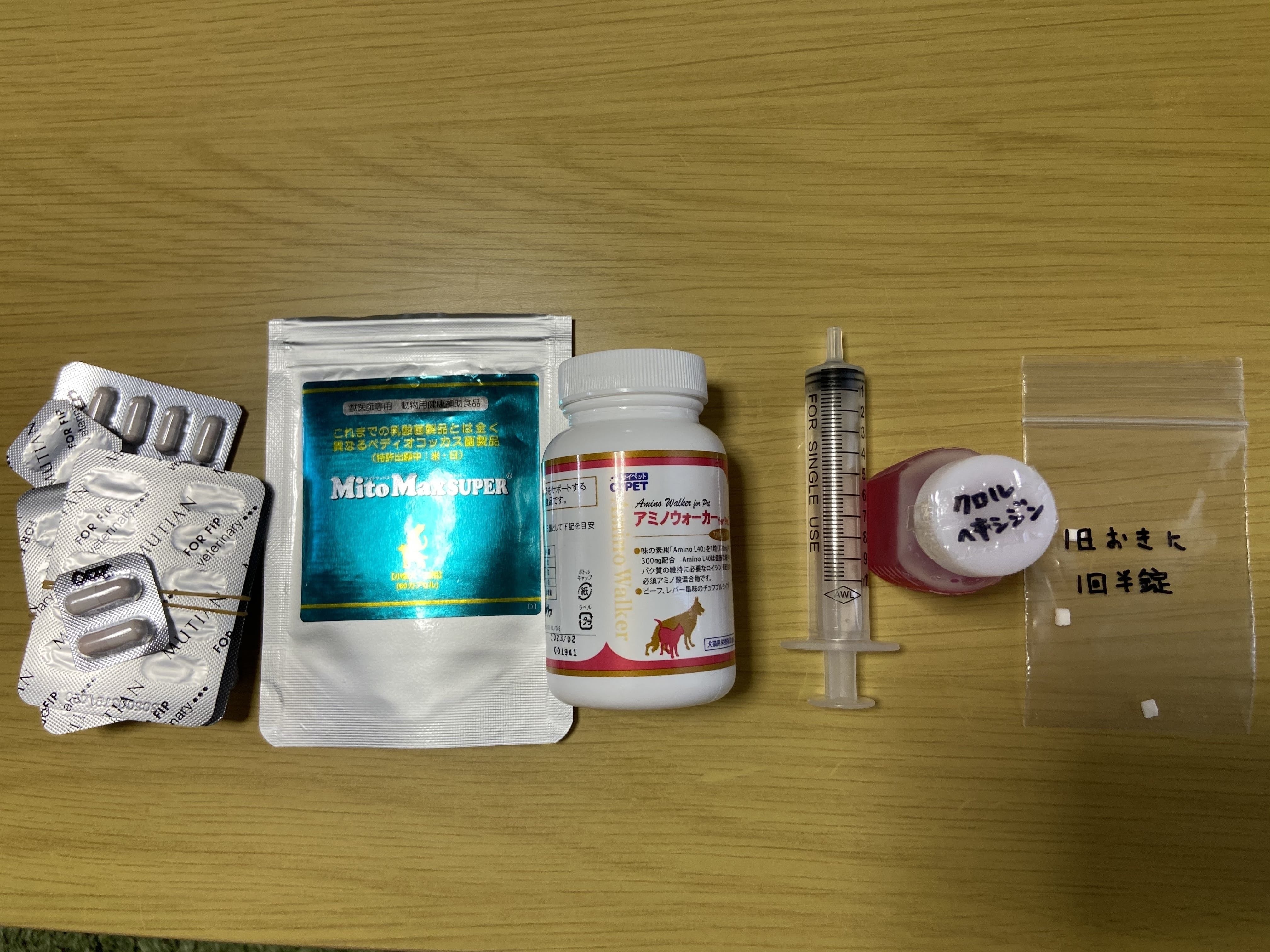 ※体重があと200g増えて2.8kgになったらMUTIANの量が250mgから300mgに増える予定です。