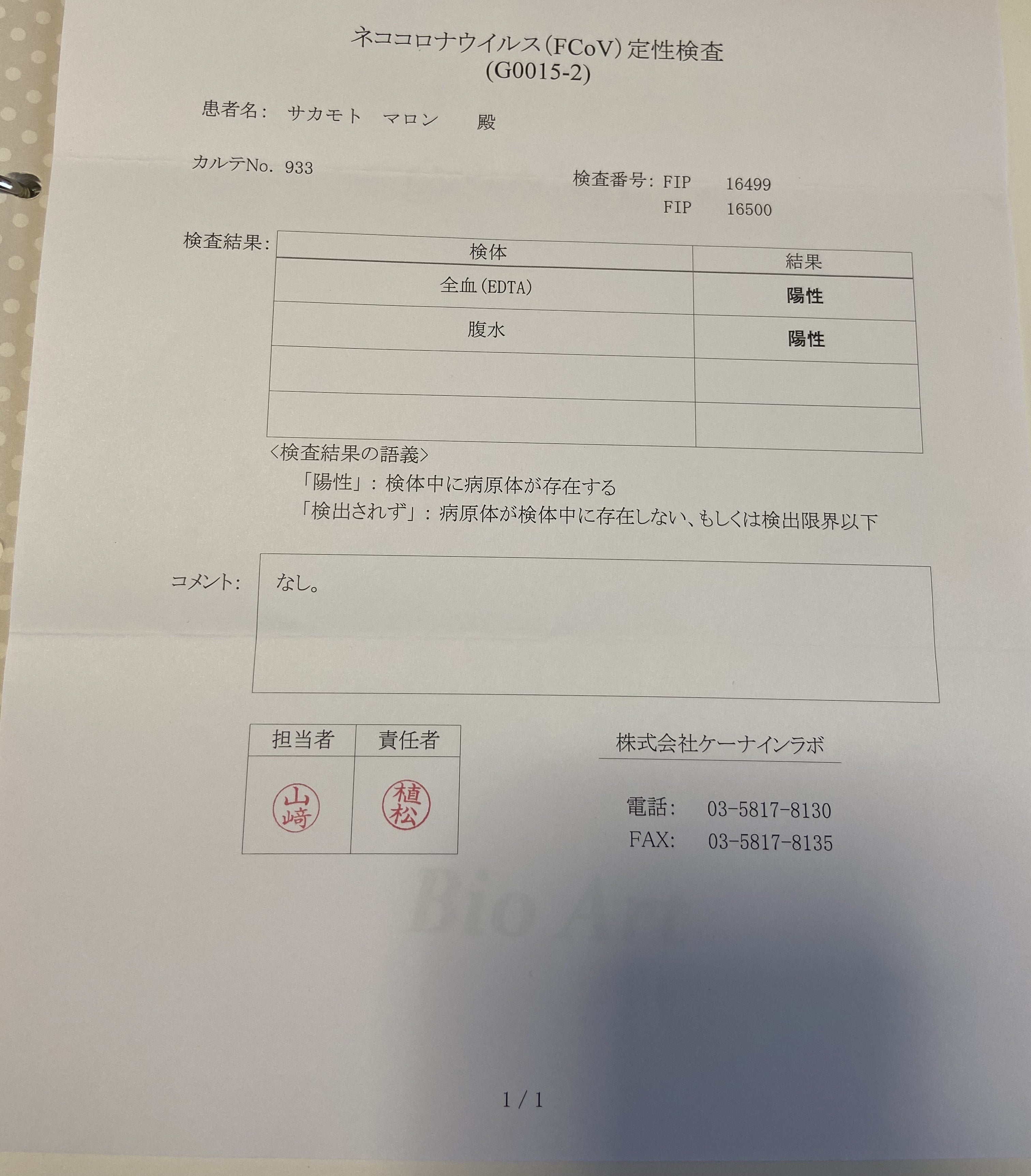 かかりつけの病院にて猫伝染性腹膜炎の可能性があると診断される。