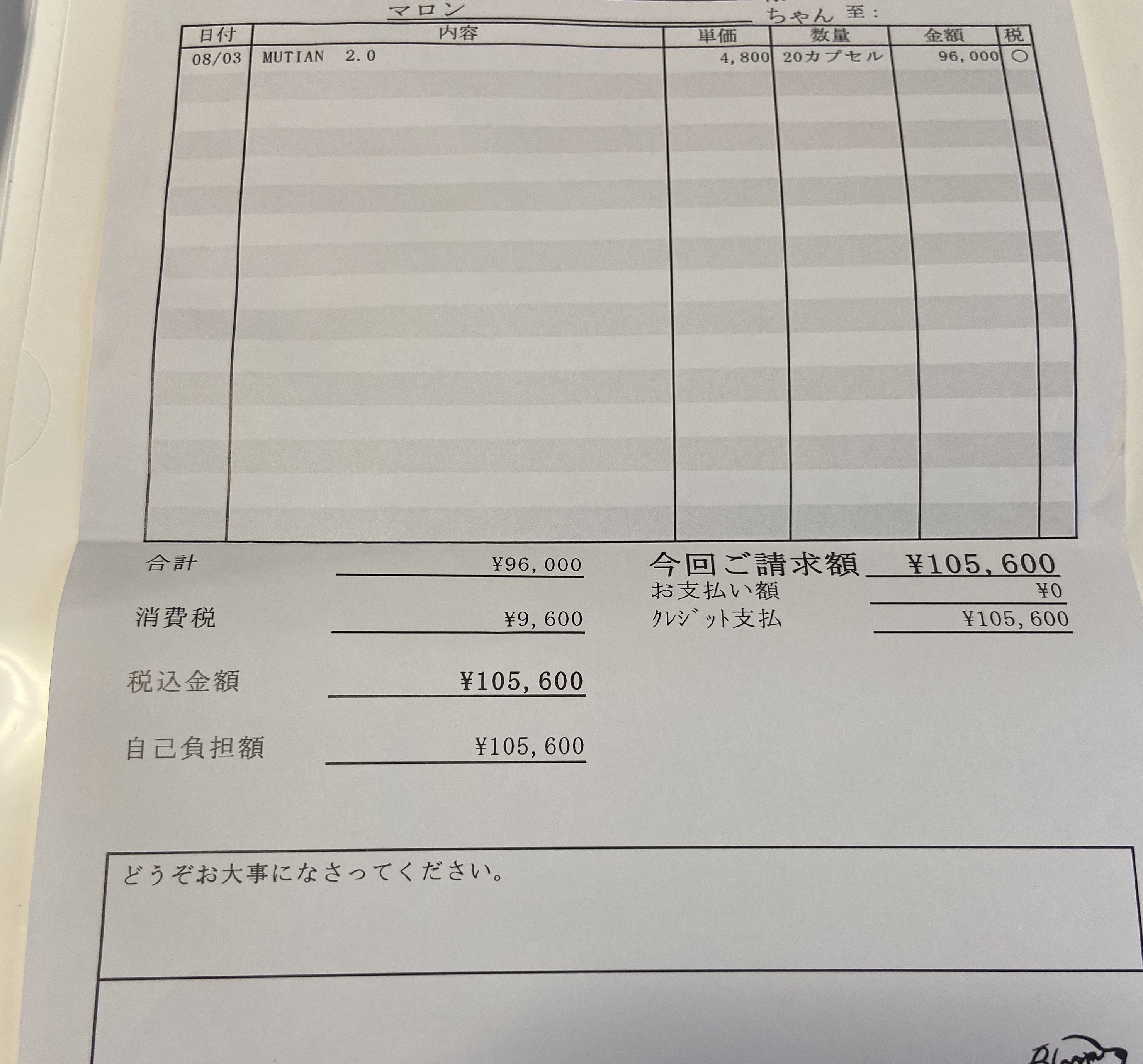 ▼MUTIANの薬代は508.800円の予定です▼