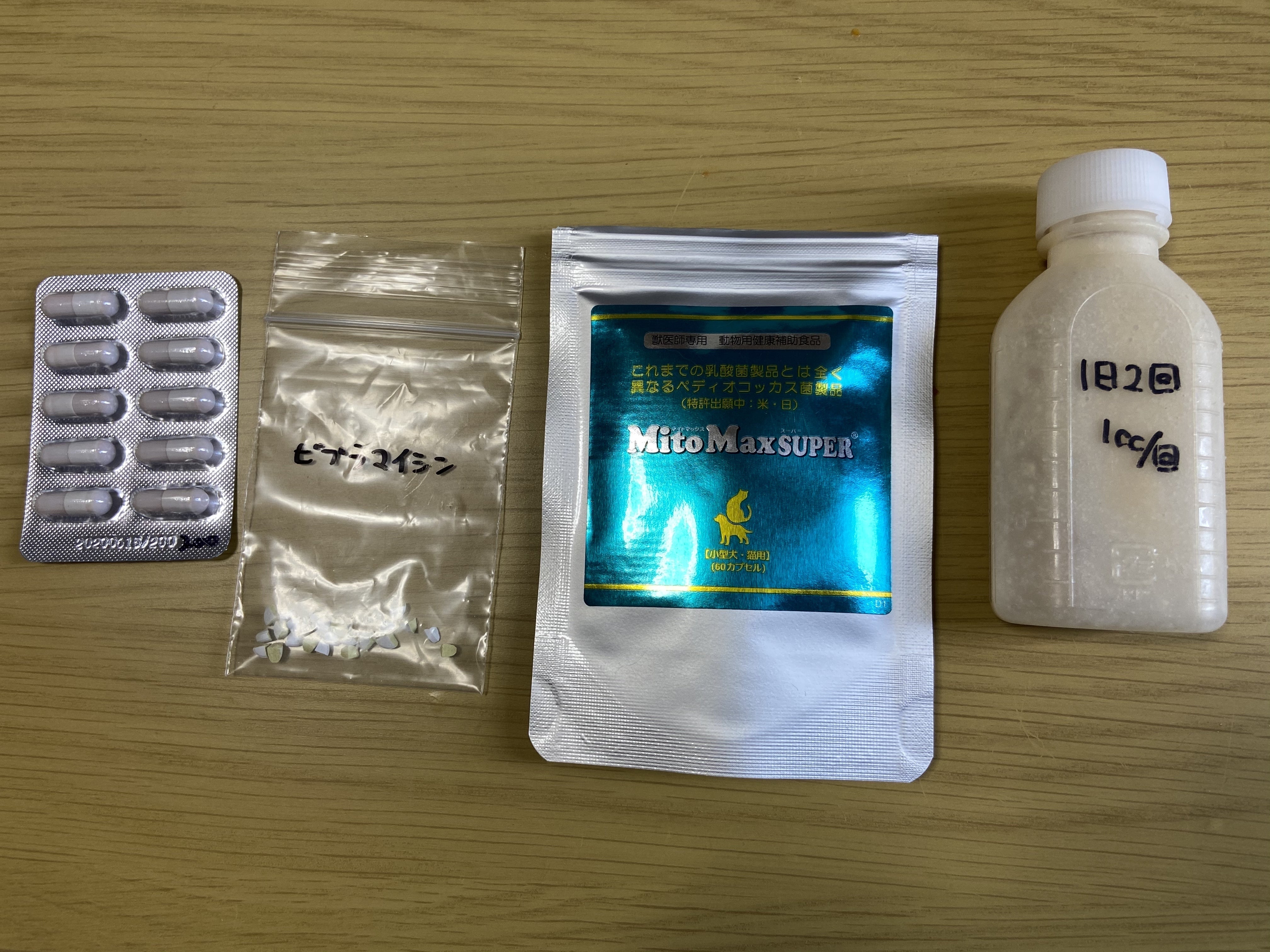 また、体重が病気の影響で減ってしまい、治療しても危険な状態のため体重増加の為の薬、サプリメントも処方してもらいました。