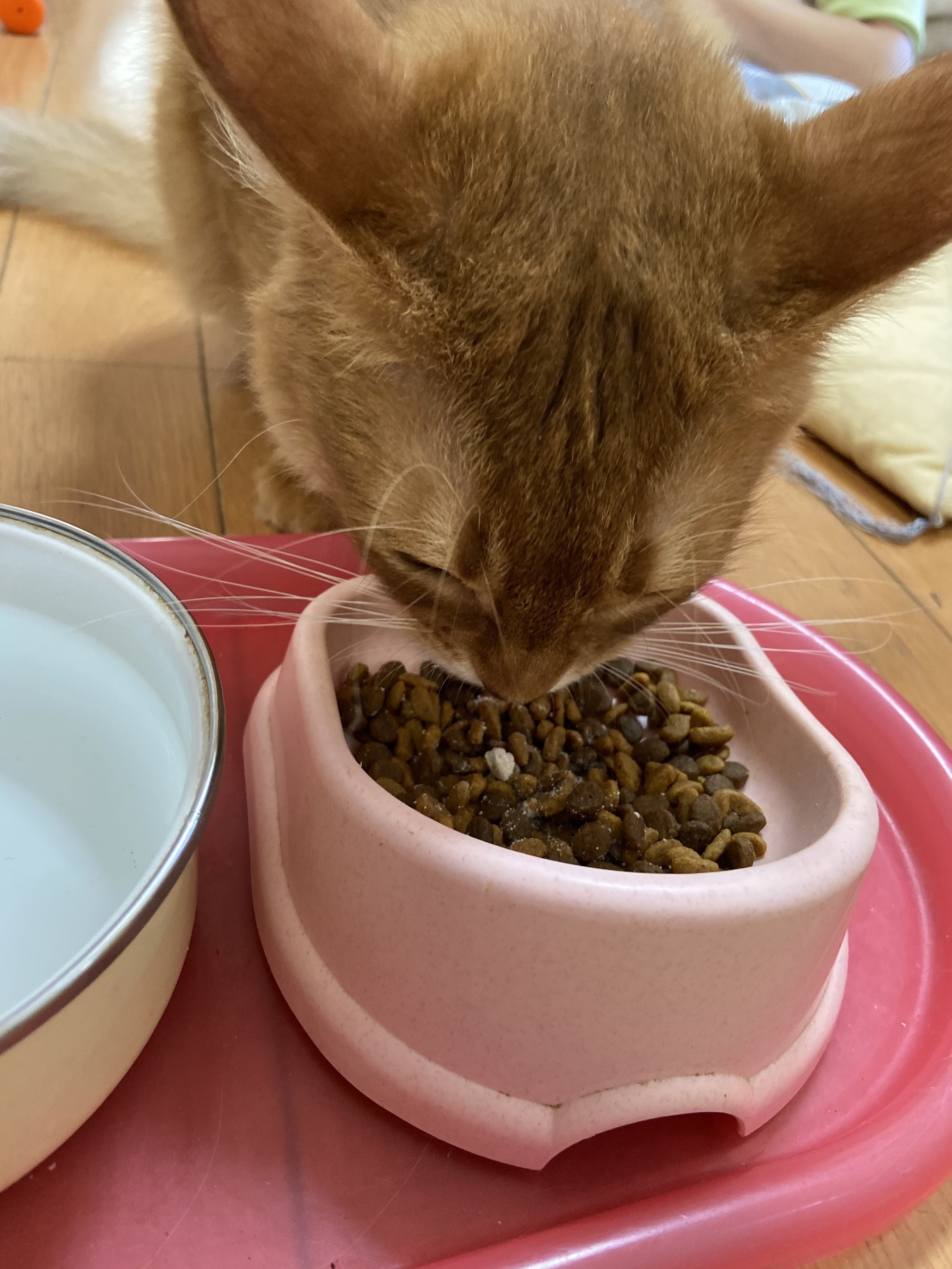 先住猫のみーとも仲良く過ごしていたのですが、ここ最近体調が悪そうでずっとぼーっとしていたり、お腹がパンパンに腫れてトイレがうまく出来なくなり、遊ばなくなりました。7月25日に病院に連れて行ったところ猫伝染性腹膜炎という致死率が99.9%の病を発症し余命宣告されました。