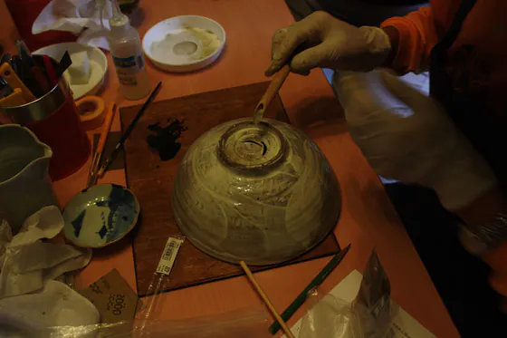 補正した部分に金粉をはいて、仕上げ。欠けた急須のフタが、魅力を増して蘇りました!