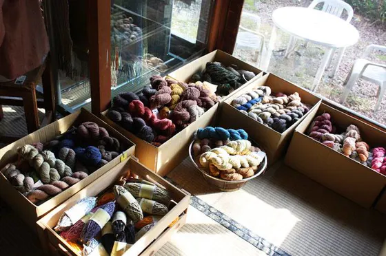 工房では、絹、綿、麻、ウールなどの天然素材の様々な糸を、鎌倉の植物の染料を中心に手染めして、販売しています。