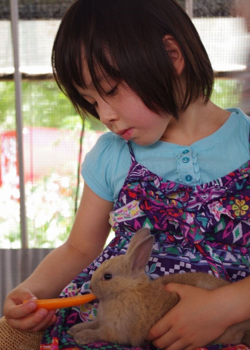 小さい頃、絵本を読んでいると、ヒヨコがピヨピヨと鳴いて~。そんな経験はありませんか?でも、実際に、ヒヨコを見たり、さわった体験はどうでしょう?住宅事情など、生活の変化により、現代の日本では、動物とふれあう機会がほとんどありません。小さな動物もひとつの命です。なでるとふわふわでほんのりと温かい、生きている証です。実際に動物を目の前にすると、子どもたちの反応は、さまざまです。「かわいい~」「だっこしたい!」「くさ~い」「ちょっとこわい・・・」などなど。どれも子供たちの正直な気持ちでしょう。「ママ、見て見て!ウサギさん!」「見て~!パパ!ヤギさんにニンジンあげられたよ!」ダチョウ王国では、日々、このような子供たちの声が響いています。ぜひ、一緒に同じ動物を見てあげてください。同じ方向を見て、共感することで、子供たちは、成長していきます。最初は、怖くて、エサをあげられなくても、兄弟やまわりのお友達があげているのをみると、あっという間にできるようになります。出来た時の自信に満ちた表情、きらきらと輝いています。