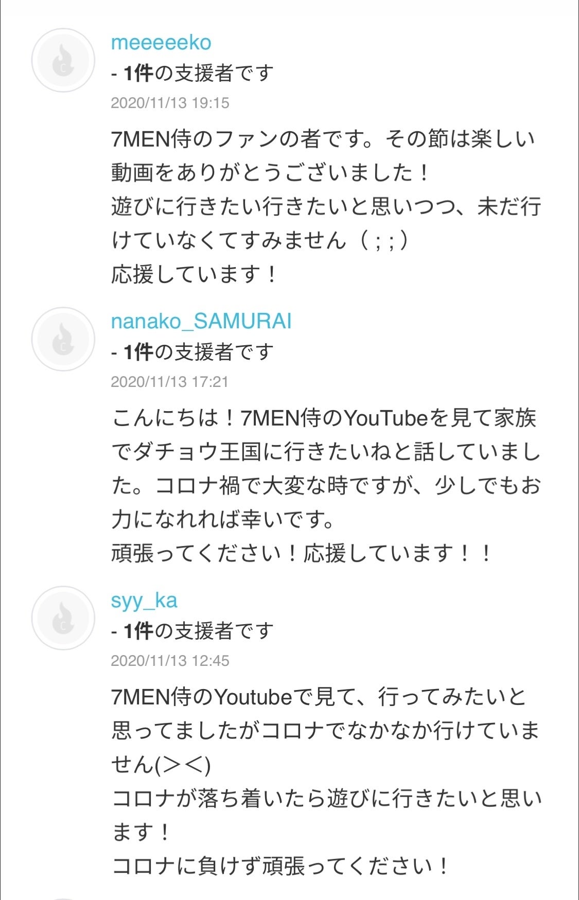 ご支援メッセージを紹介させていただきます。