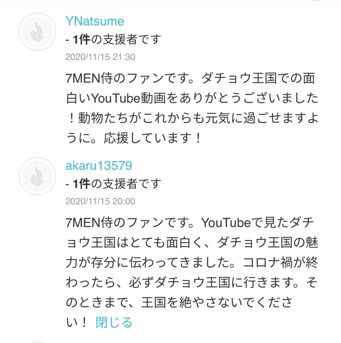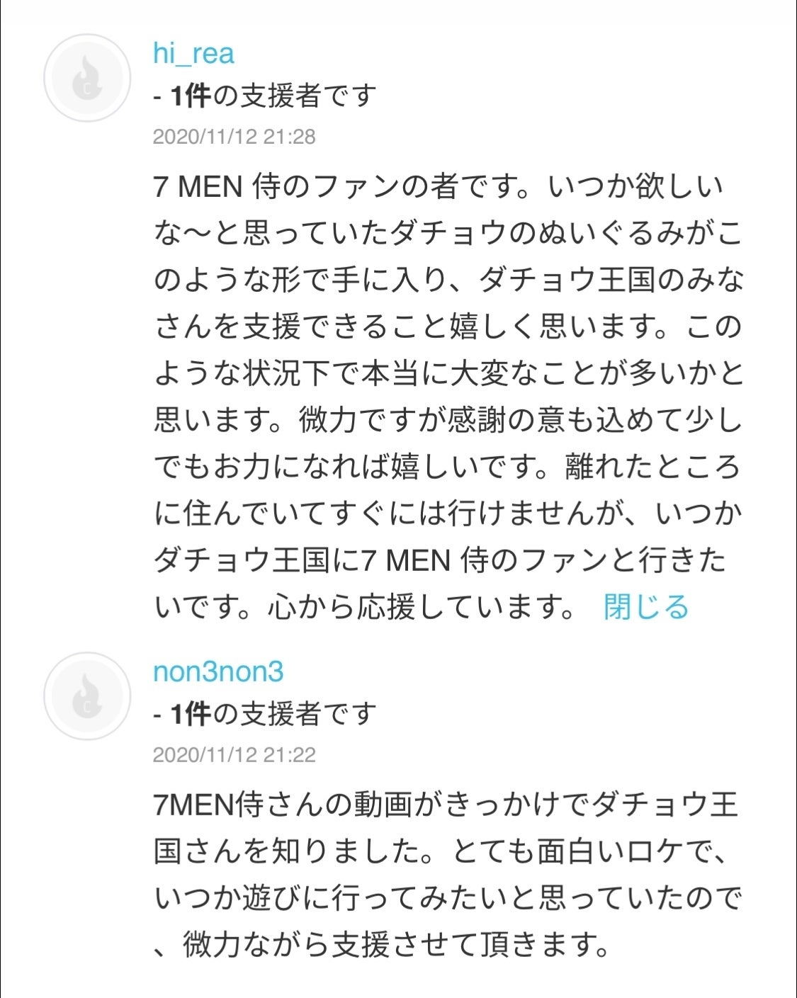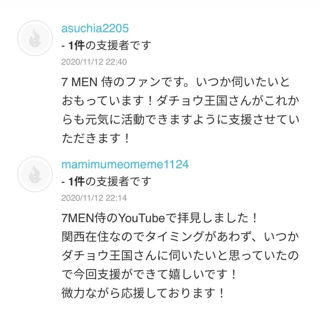 今回のクラウドファンディングにも、ファンの方からご支援をいただいています。