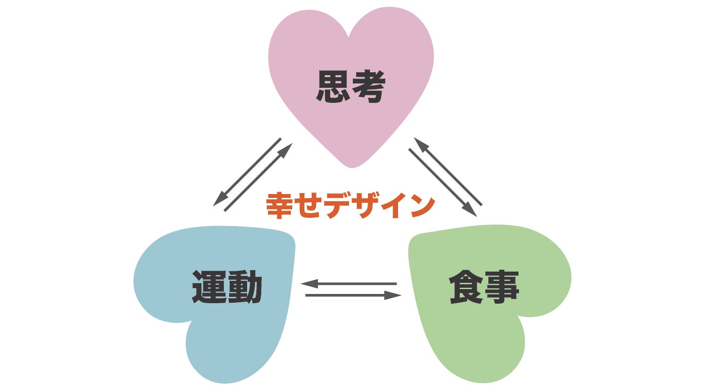 『幸せデザインラボ』は3つのポイント「思考・運動・食事」の向上を目指しながらバランスを保ち、