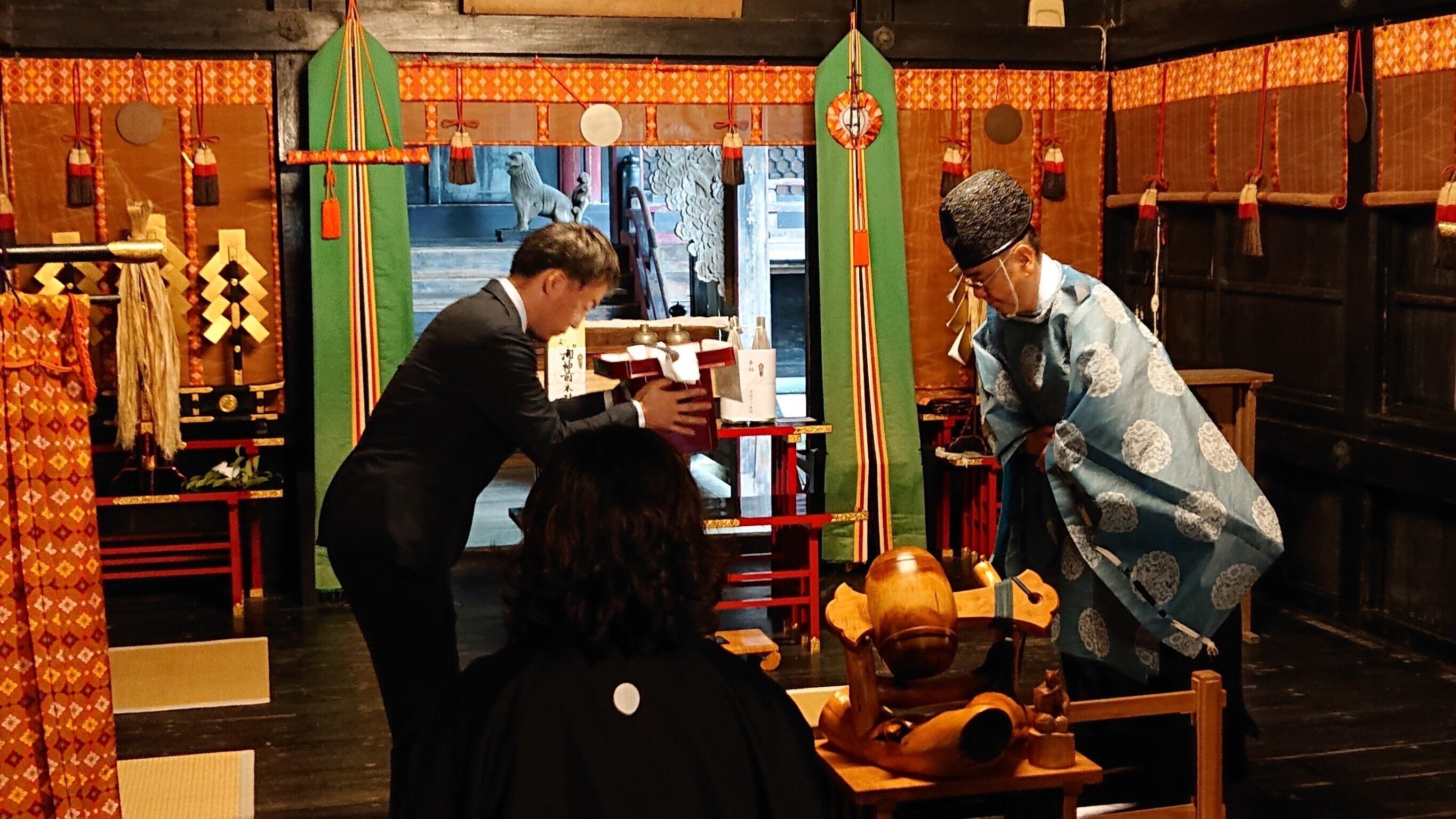 また、昨日令和二年長月六日午前、青井阿蘇神社幣殿において当プロジェクトの報告祭が催行されました。福川宮司の祝詞に、支援いただいている皆様への感謝と研磨師作業の無事遂行が祈願され、宮司より研磨師へ御神刀および奉納刀数振を預けられました。多くのご支援を受けている事、錆身である為少しでも早く研ぎを始める事を踏まえ、クラウドファンディング終了前では御座いますが本格始動する運びと成りました。此処から再び始まる1000年に想いを込め、関係者一同、一段と身を引き締めて参ります。