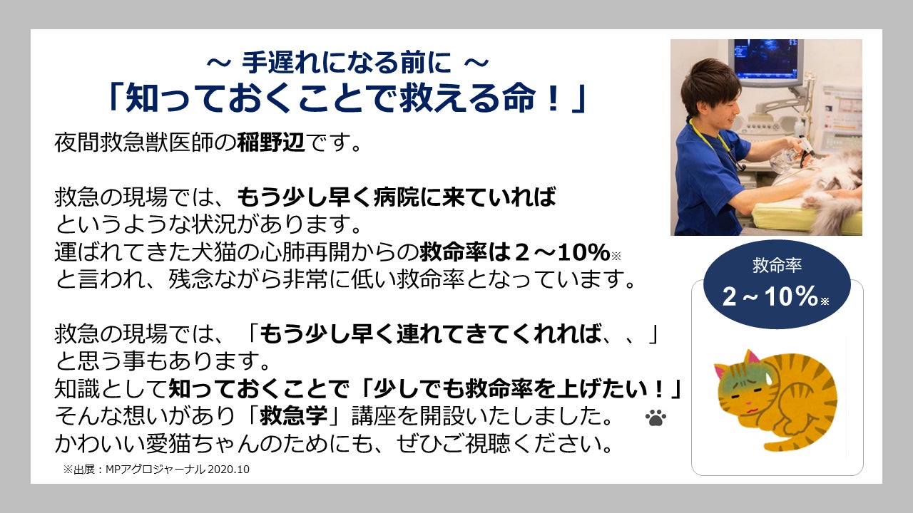 Youtuber獣医師でもある【稲野辺 悠先生】による救急学・予防法講座。