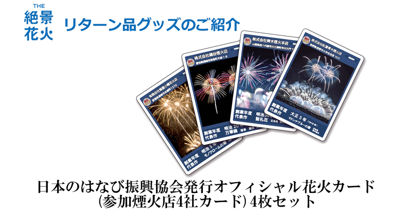 日本のはなび振興協会発行オフィシャル花火カード(参加煙火店4社カード)4枚セット