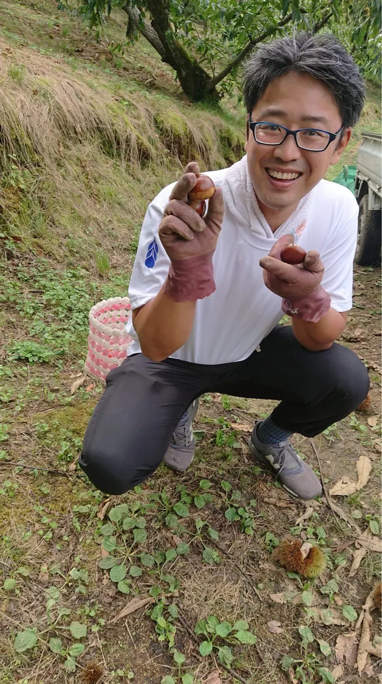 先ほど、ほうせんと栗園で橘三兄弟栗拾いをしてきました!