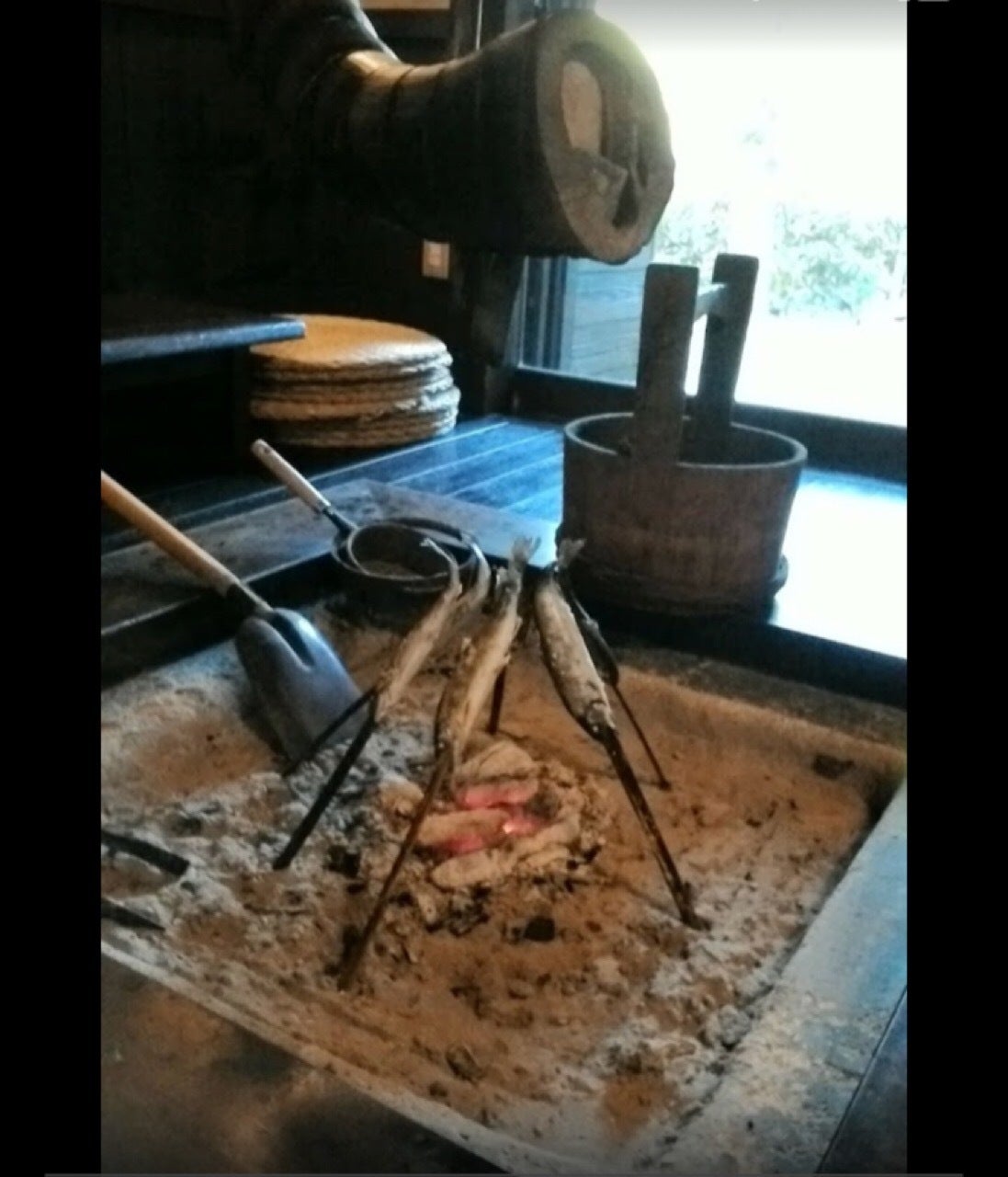 囲炉裏で香ばしく焼いたアマゴが絶品です。