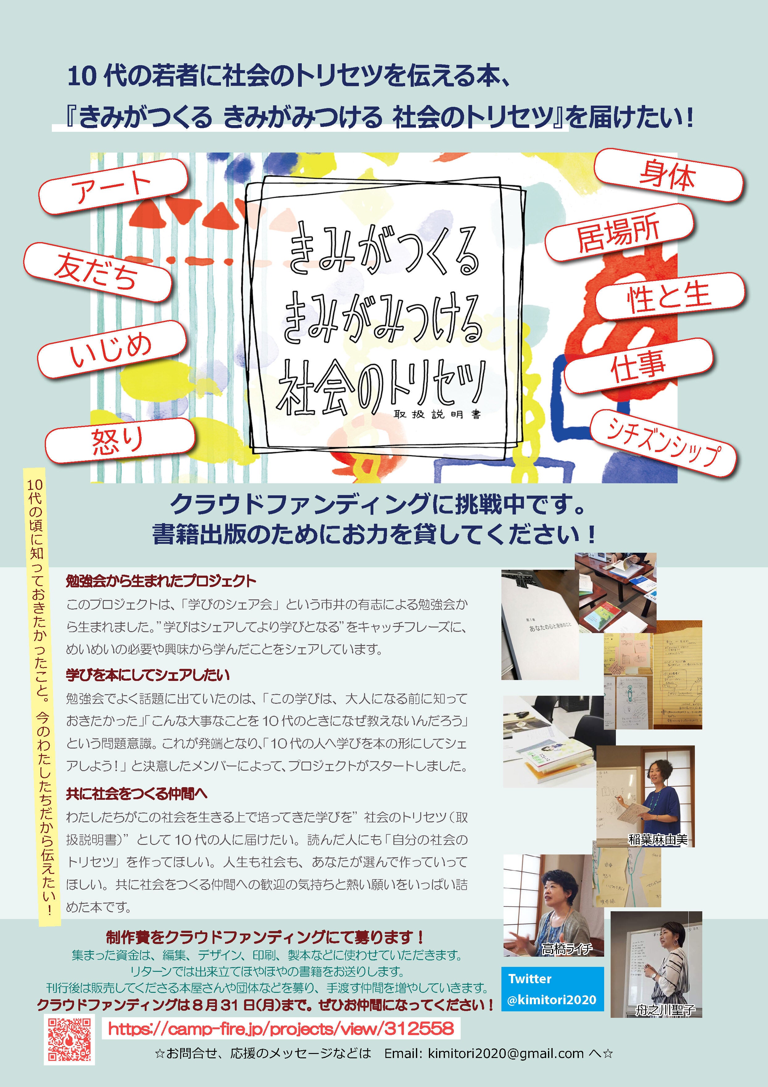 執筆メンバーの皆さんとはもうずいぶん前から友人で、特にFacebookで「学びのシェア会」の活動などは知っていたものの、なかなか勉強会への参加などはできずにいました。しかし、今回、クラウドファンディングに挑戦するということでお声がけいただき、趣味でチラシを作ったりイラストを描いたりするのが好きなので、このWEBチラシも作らせてもらいました。