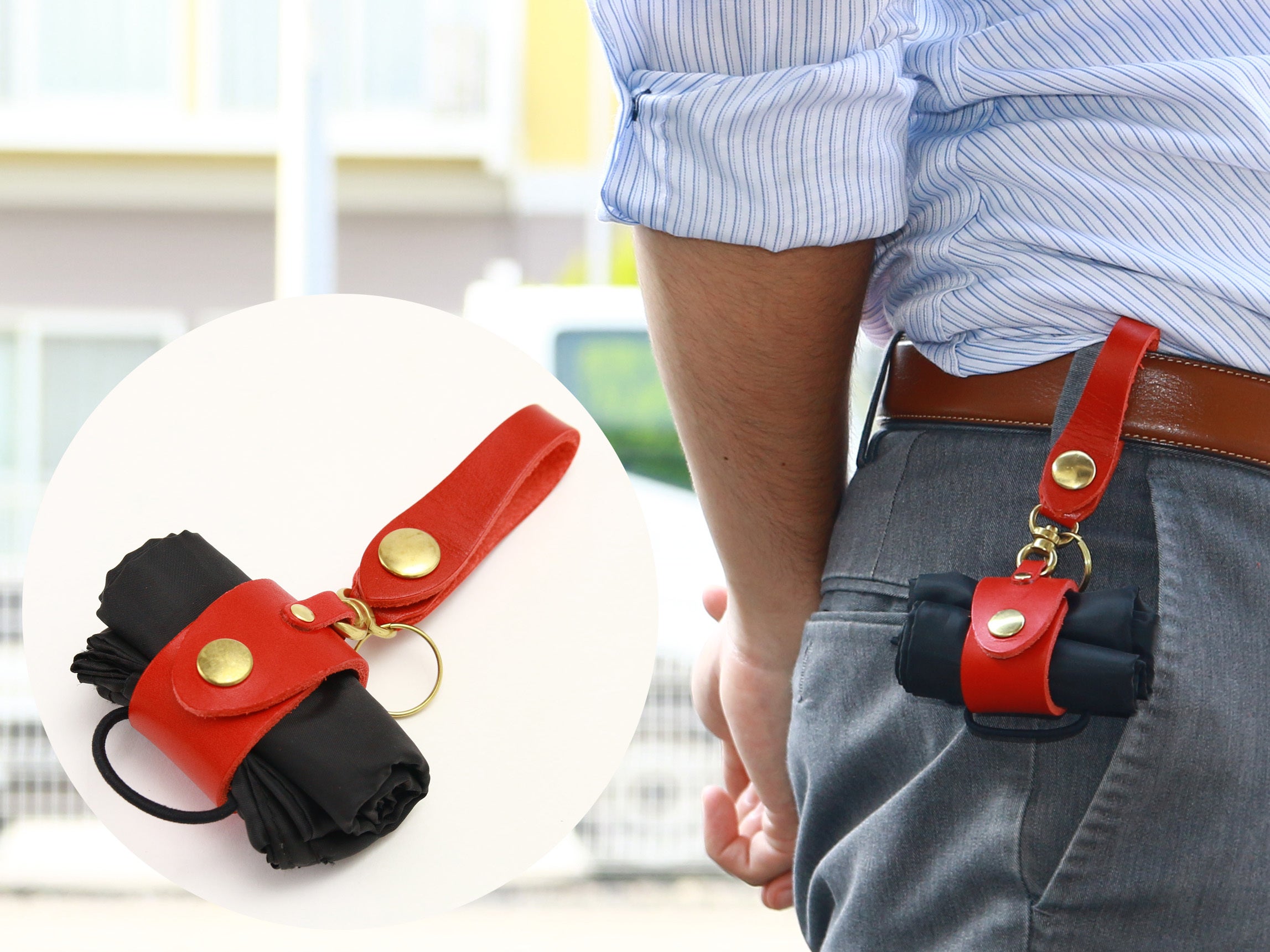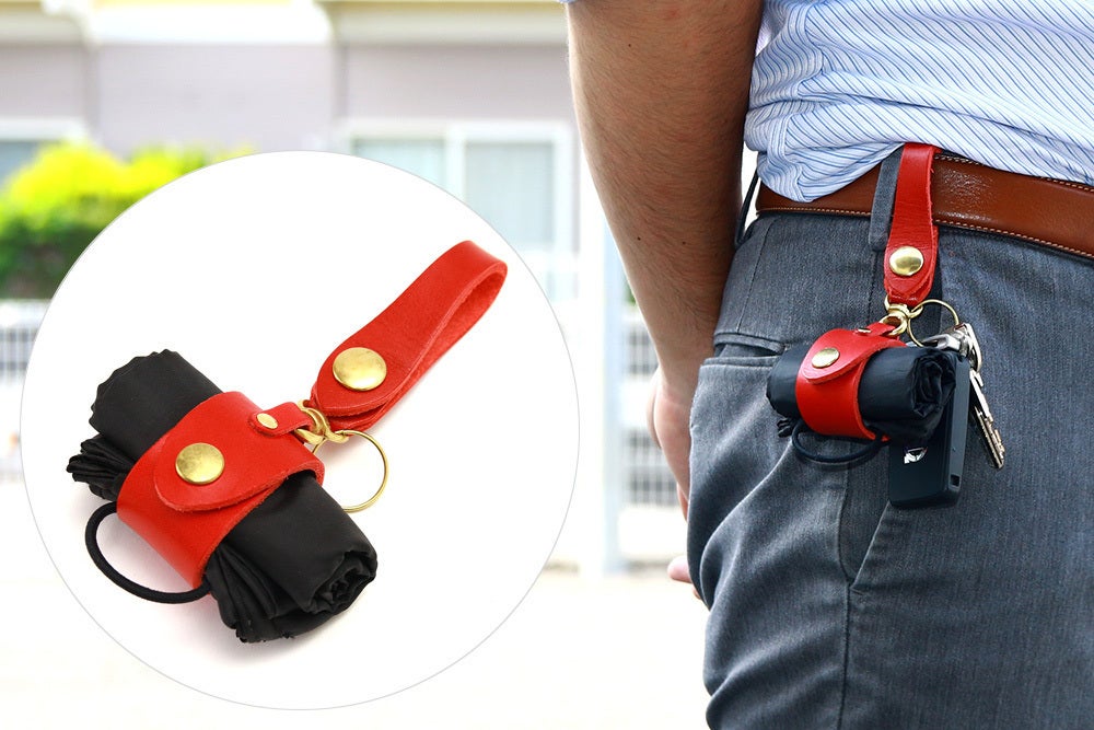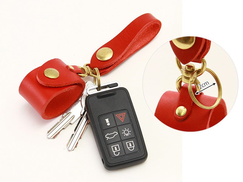先端にはパンツのベルトなどに通せる革のループがついているので、レザーのキーホルダー感覚でウエストにぶら下げることができます。
