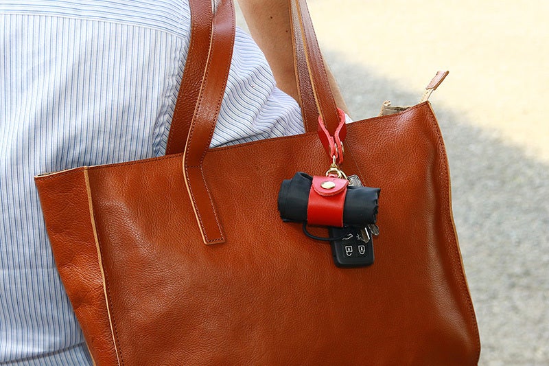 こちらのリエールをベースにサイズを変更し、キーリングを取り付けたのが『マイバッグホルダー』になります。