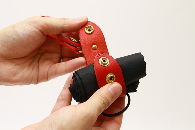 エコバッグ単体で使用するときは、丸めたエコバッグを上部のループ(ゴム)で固定することができます。