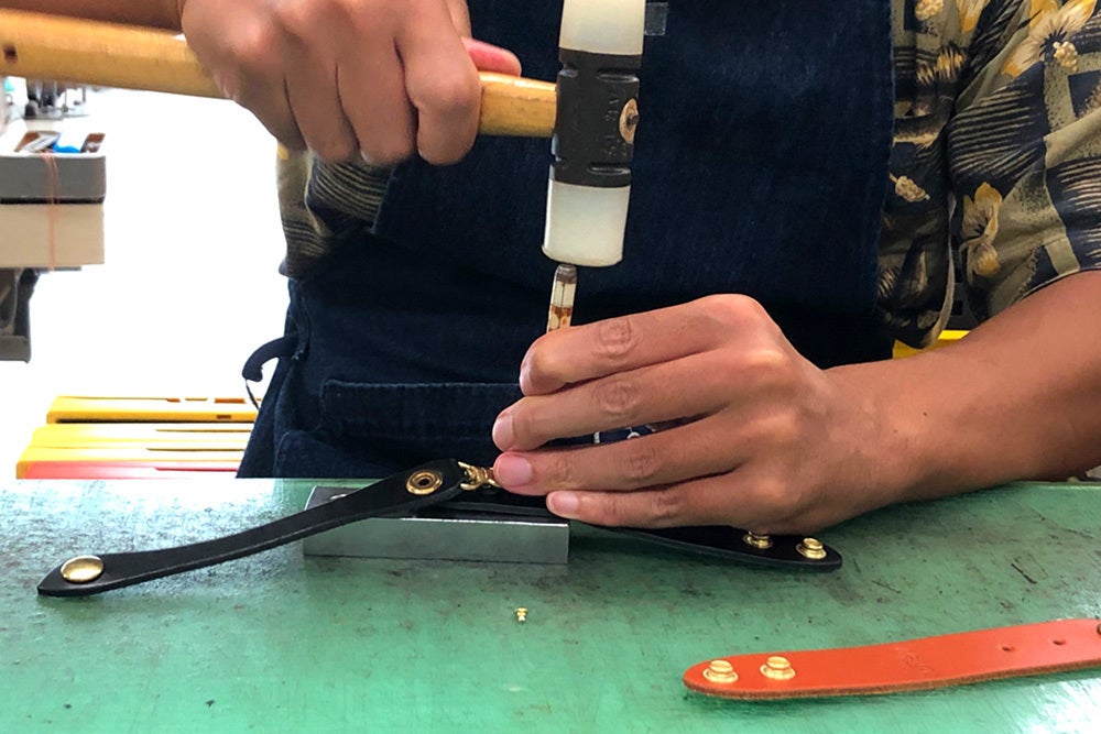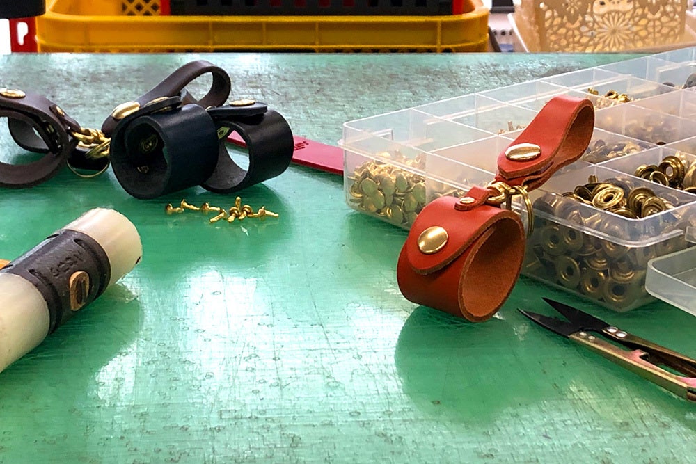 【カシメ打ち】マイバッグホルダーの縫製がスタートしました!!