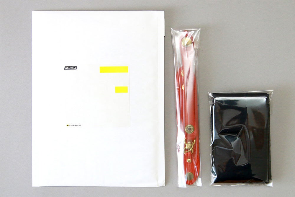 平らに折り畳んだ状態でクッション封筒で梱包後、ヤマト運輸のネコポスで発送します。