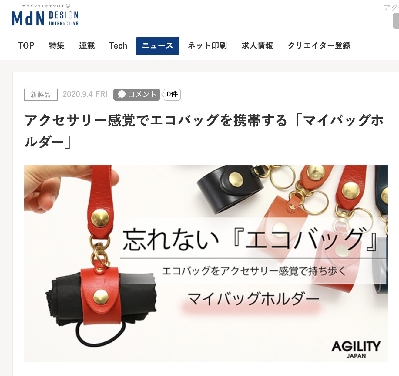 お世話になっております。AGILITYです。ご支援いただいております12名のサポーターの皆様!!誠にありがとうございます。本日はマイバッグホルダーの掲載情報を紹介します。・MdN Design Interactive【アクセサリー感覚でエコバッグを携帯する「マイバッグホルダー」】https://www.mdn.co.jp/di/newstopics/75099/是非ご覧ください!!残り11日、引き続き皆様のご支援お待ちしております!!