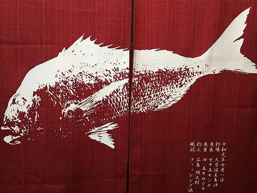 ご存知のように、暖簾も魚拓も古くから親しまれている日本文化でございます。暖簾は現在でも多くのシーンで活躍していますし、私も大好きなインテリアの一つです。
