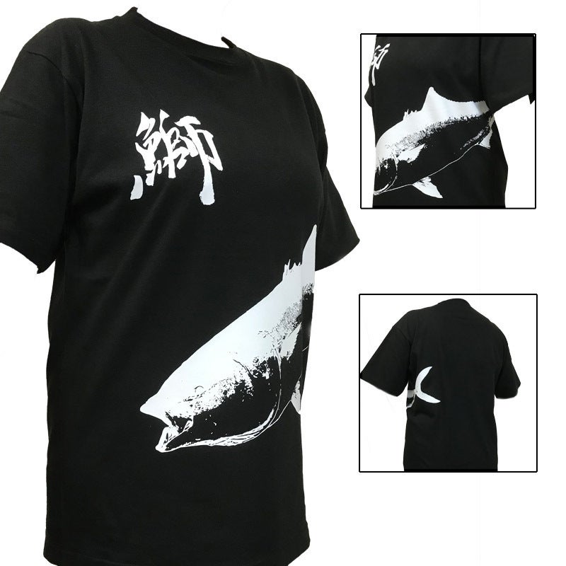 先日から制作していた当店のユニホーム...スタッフが釣り上げた95cmの鰤魚拓Tシャツ!