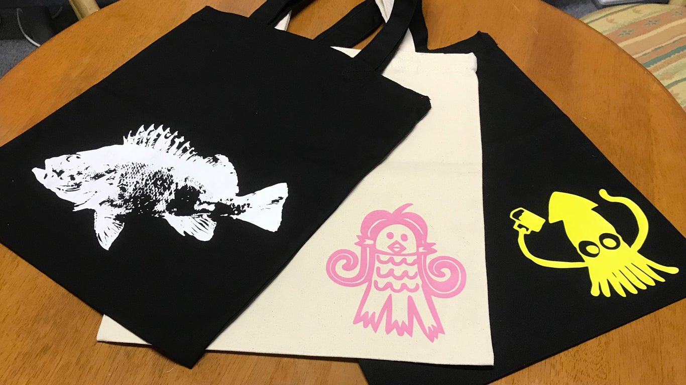 リターンを追加しました♪特にオススメは眼張トートバッグ~魚拓暖簾と同等のクオリティーです!