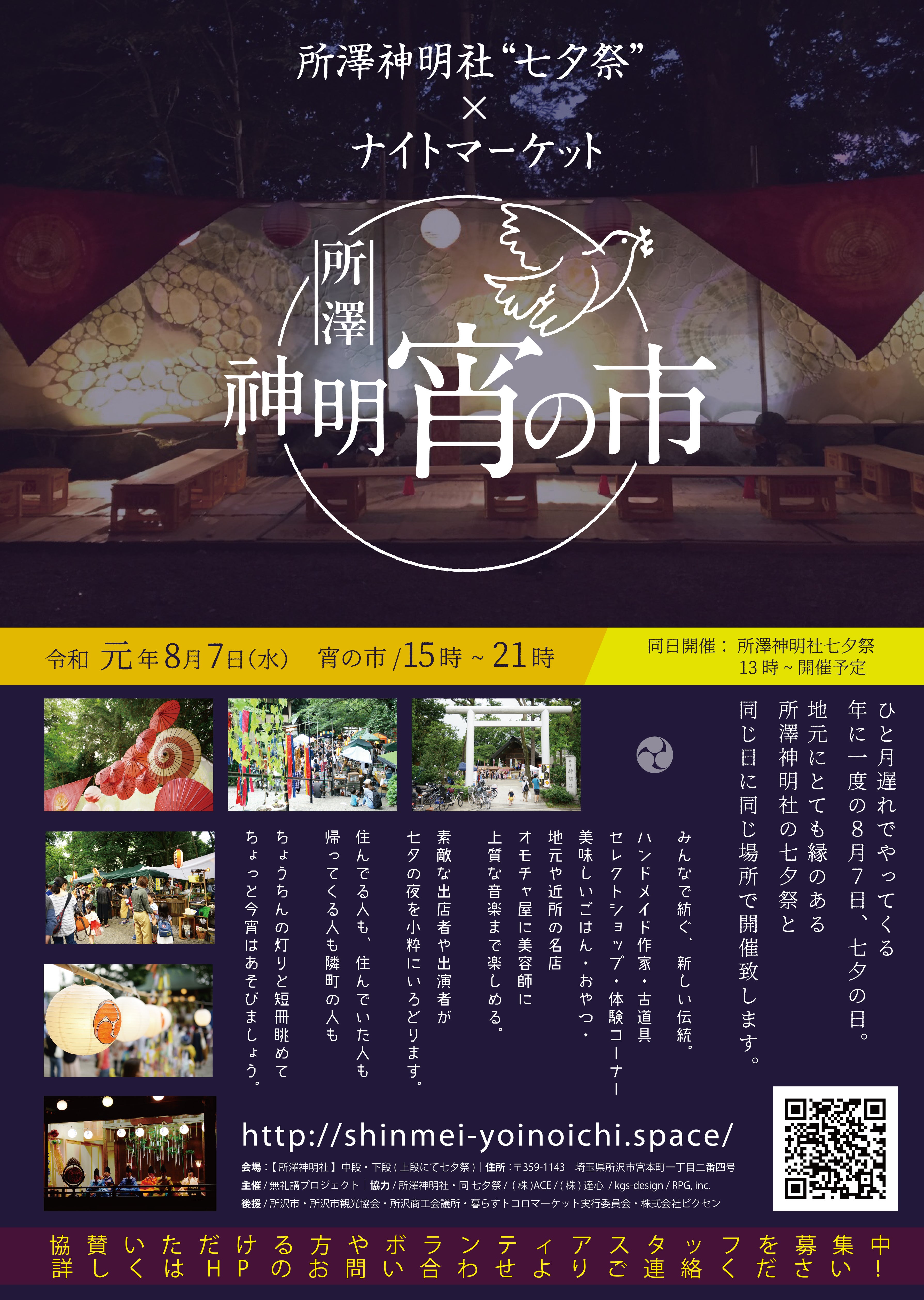 2020/08/15 17:57【第四回 神明宵の市 開催終了の報告】今年も神明宵の市に訪れて頂いたみなさま誠にありがとうございました。第一回目から台風・台風・天晴れと続き、今年の第四回目は予想にしなかった疫病が流行った年となりました。神明社様、実行委員、街の様々な方々の意見を伺い、私たちが出した結論が今回の空間演出のみの開催でした。当日はほどほどの来場者で、終始収容率は50%以下程度。そのほどほどの距離感の中、陽が沈み始めると宵の市の真骨頂でもある幻想的で懐かしい不思議な境内が、今年はゆっくりと穏やかに現れました。本部では短冊を用意し、短冊を書いて頂いた方にはボールペンをプレゼントしました。近頃の使い回し禁止の風潮をふまえた記念品の意味も込めて用意致しました。短冊に書かれる願いや祈り、写真を撮影して空を見上げる人々、作家作品を楽しげに触るこども達、当日にご協賛いただいた方も多く、懐かしい顔ぶれにも多く会える日となりました。「おまつり」を深く感じる時間が沢山ありました。「今年ならではの開催」という難しいお題に結論が出たのがおよそ開催日の2週間前。その短い時間の中で、これほど素敵な空間を生み出してくれた七名の作家達のすごさを目の当たりにしながら、すべてがイレギュラーな展開の中、臨機応変縦横無尽に活躍した実行委員の面々。我々の思いに共感していただいた神明社様、クラウドファンディングを通して背中を押してくれた協賛者様方、当日、少しの時間でも様子を見に来ていただいたみなさま、来られなくても覚えていてくれているみなさまのおかげで、今年も開催することができました。本当にありがとうございました。新型コロナウイルスの環境下で、どのようなことが起きるか本当に分かりませんが、この先どんな形であれお祭りは無くならないと思いました。来年を見据えることが出来る、とても良い機会となりました。来年は土日開催を計画しており、すこし規模も大きくできたらいいなと考えております。必ずや来年は今年の分も大賑わい大賑わいで月遅れの七夕を過ごせるよう、今年は疫病を見つめながら、大切な事を見失わずに地域と共に生き抜きながら過ごしていきたいと思います。今年もとても大切な時間を生んで頂き、誠にありがとうございました。それではまた来年みんな元気な姿でお会いしましょう。神明宵の市 実行委員 一同※クラウドファンディング(協賛募集)は8/22まで開催中です。私たちの活動にご賛同頂けましたら是非応援の程宜しくお願い致します。https://camp-fire.jp/projects/view/312852 もっと見る