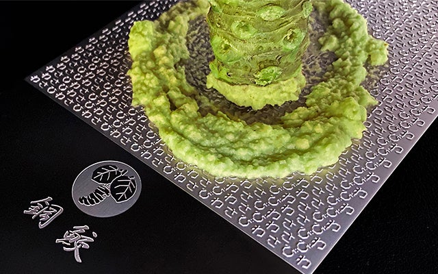 それまでは「本わさび」を買った多くのお客様がご家庭にある金属やプラステック製の薬味おろし器を使い大根おろしのごとく粗くすりおろして「家ですりおろしたら全然辛くなかった」と言われ続ける中「誰が使っても、すし屋や割烹で味わうようなわさび本来の味を引き出すおろし器が必要」と常々強く感じていました。