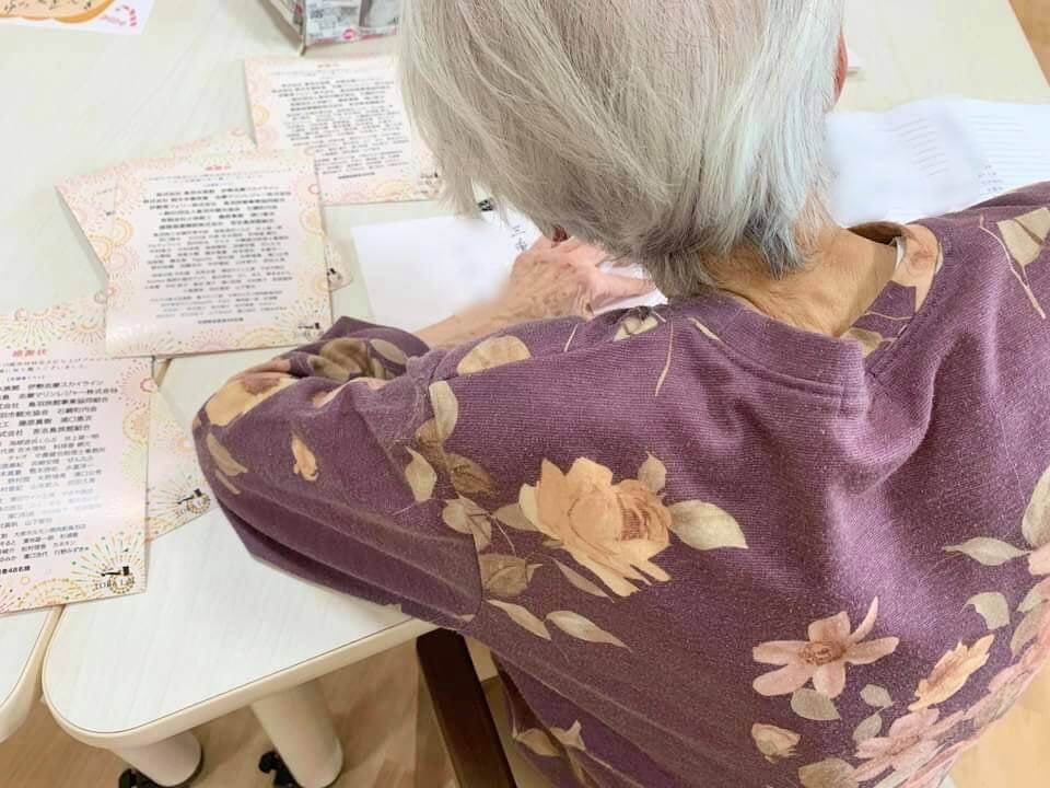 感謝状の宛名書き・切手貼りは、鳥羽のデイサービス施設(サービス付き高齢者向け住宅 すてっぷ)に通う、高齢者の皆さんにご担当いただきました。