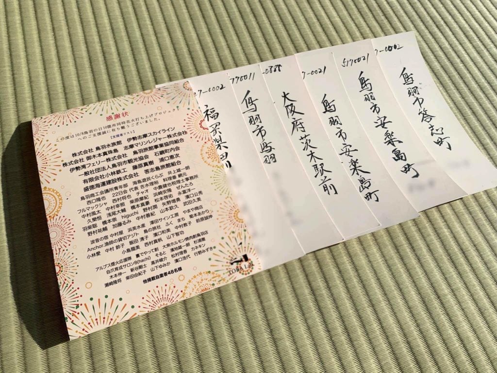 花火打ち上げプロジェクト(ヒカラセナイト)をご支援いただきましたプランB、Cの皆さまの元へ感謝状を送付させていただきました。