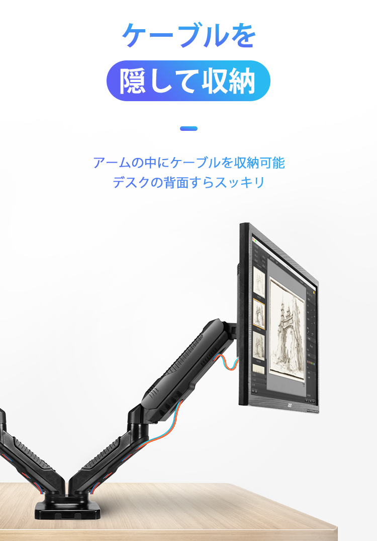 ●アーム=ケーブルホルダーでデスク上すっきり!