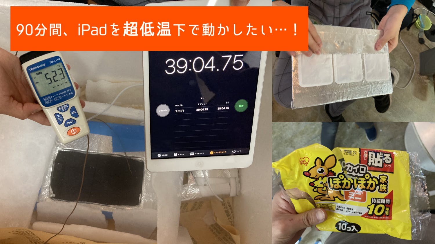 3回目はiPadを保温している発泡スチロールにホッカイロを入れて、さらに保温しやすくしたのに、だいたい同じくらいの40分程度で止まってしまいました。