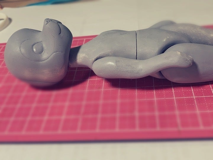 ソフビ成型後に数パーセント縮むので、最終的なサイズは12~14センチ以内の身長になると