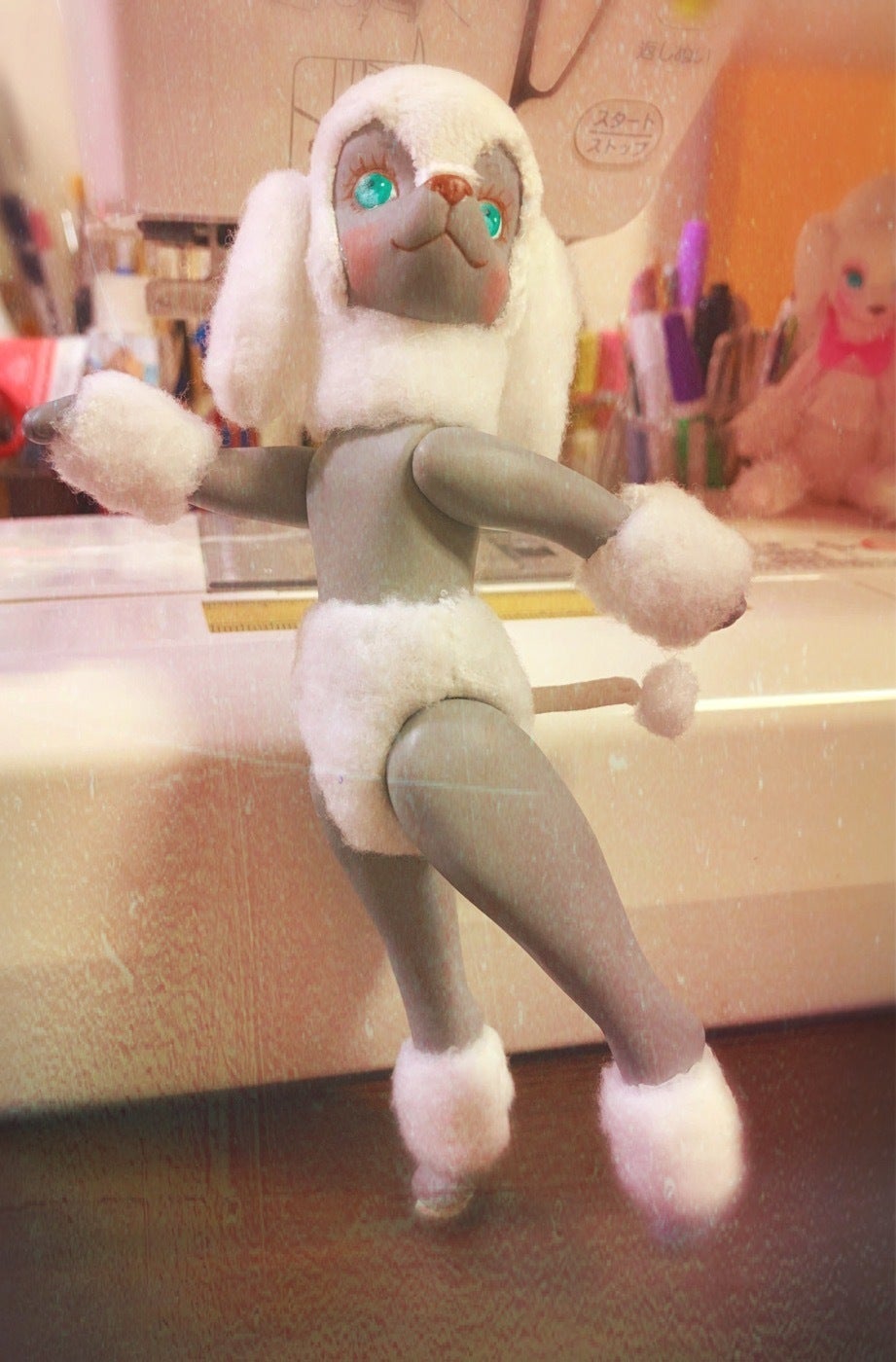 ソフビ完成後に私が頭部、手足の先、腰回りにボアを貼り付け、