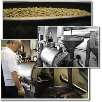 コーヒーは生豆を専用の焙煎機で火にかけてじっくりローストします。コーヒー豆に残っている水分を飛ばしながら同時に豆の個性を引き出すのです。