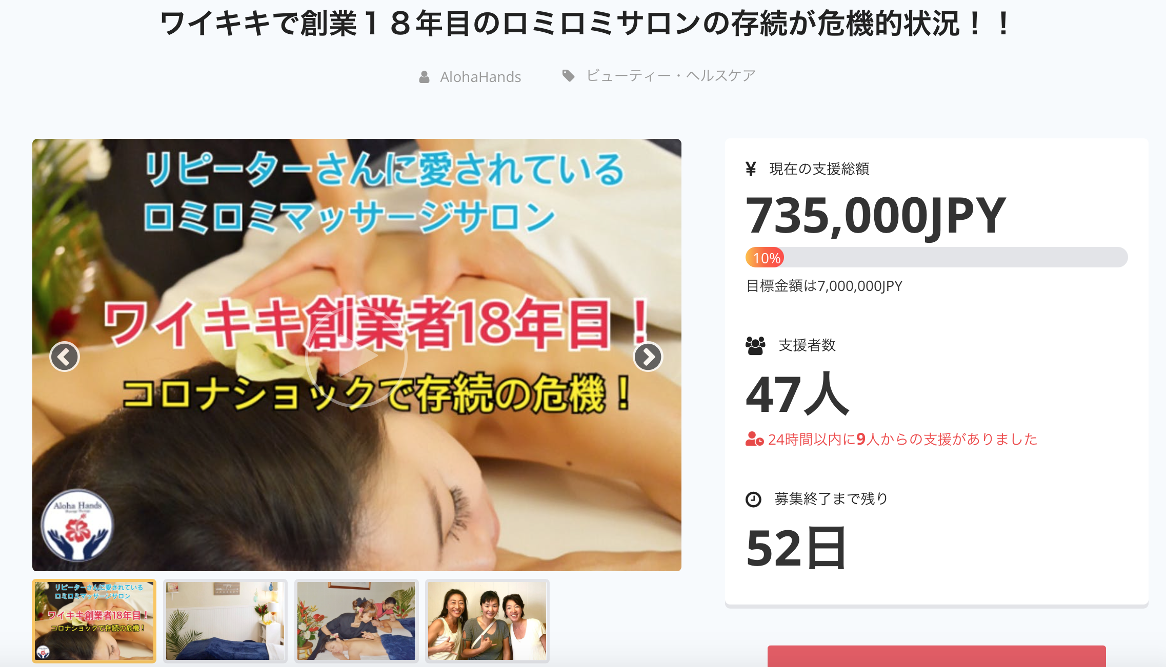 ハワイ時間24日午後5時にプロジェクトを開始してから、現在2日半が経過しました。お陰様で、スタート時の設定目標10%まで到達することができました。