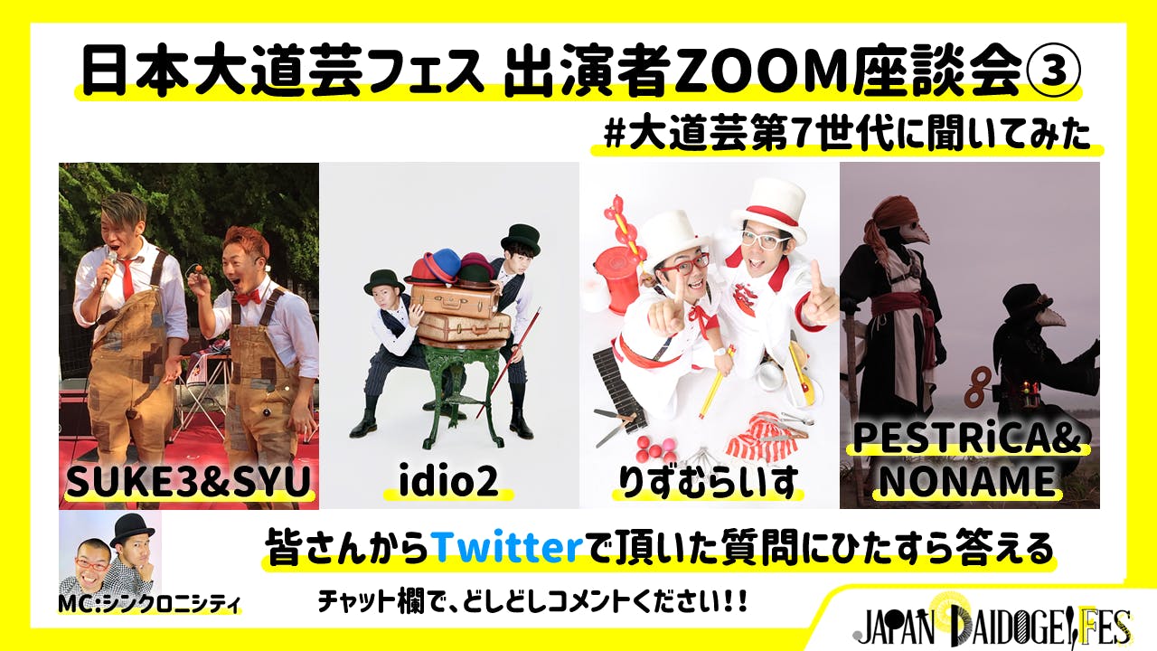 先日、『日本大道芸フェスティバル出演者ZOOM座談会#大御所パフォーマーさんに聞いてみた』You Tubeプレミア公開が終了しましたが、残りの