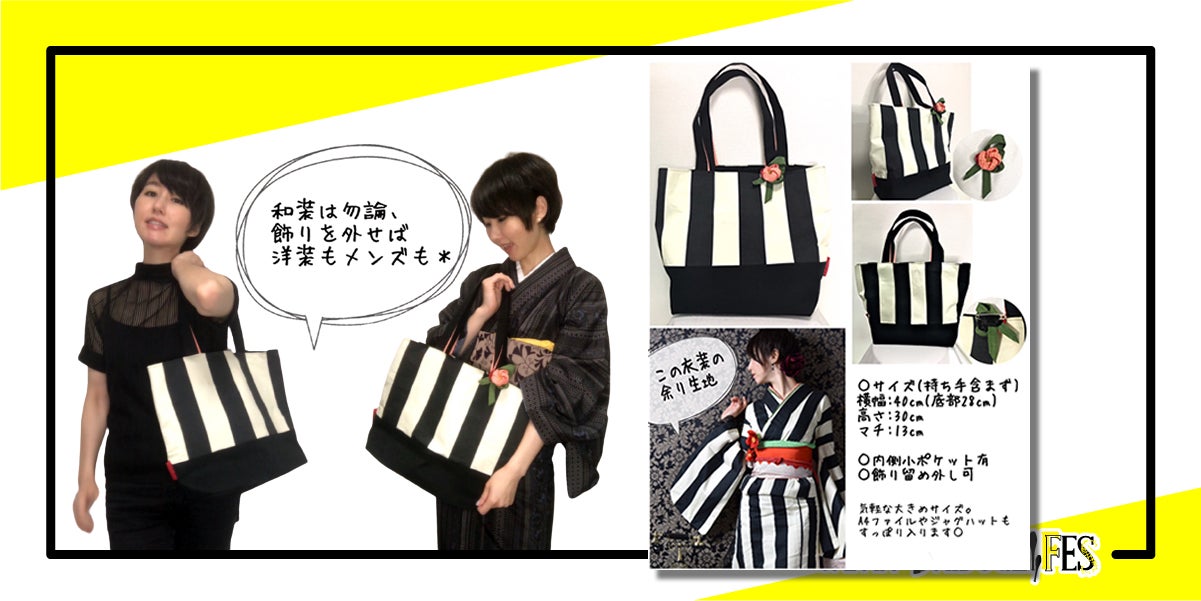 izumaさんからは衣装の余り生地で作成した、トートバッグをご提供いただきました。なんとizumaさんご自身の手作りです。