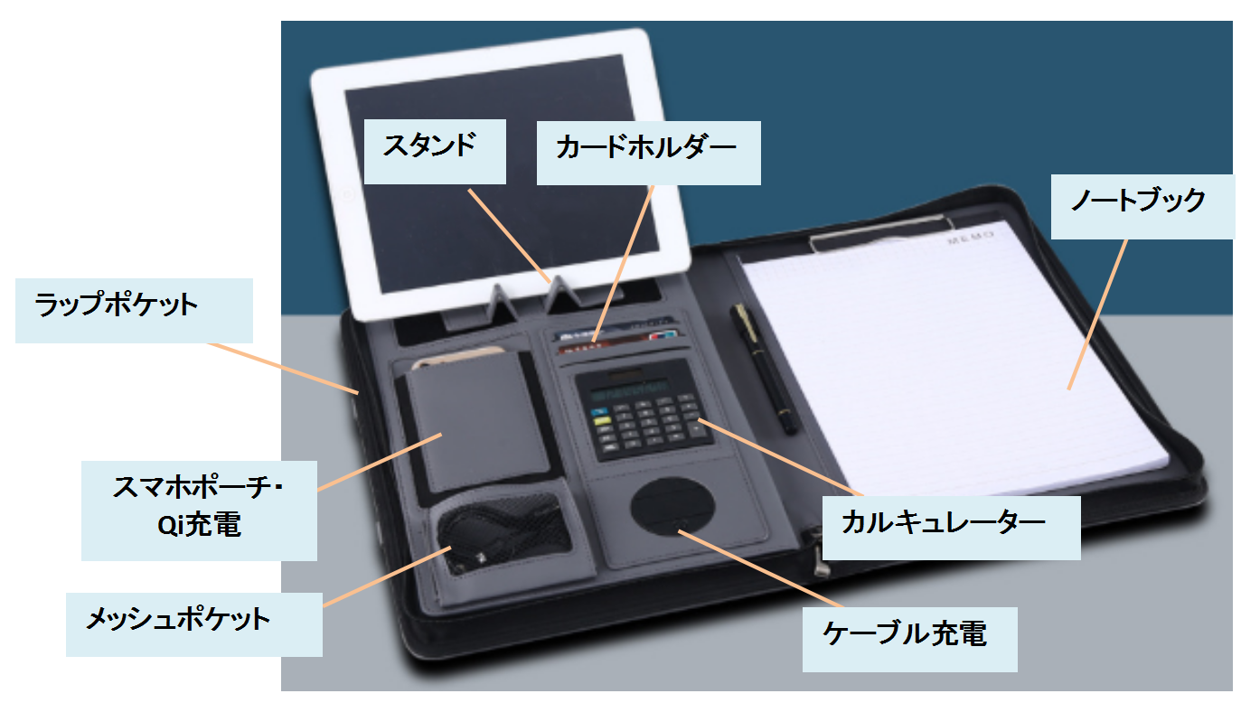 収納・充電・スタンド・カルキュレーター、使いやすさを追求した究極のフォルダー