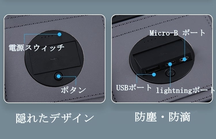 また、Qi非対応機種の充電に利用できるUSB出力ポートも搭載され、隠れたデザインで防塵・防滴を実現してきました。