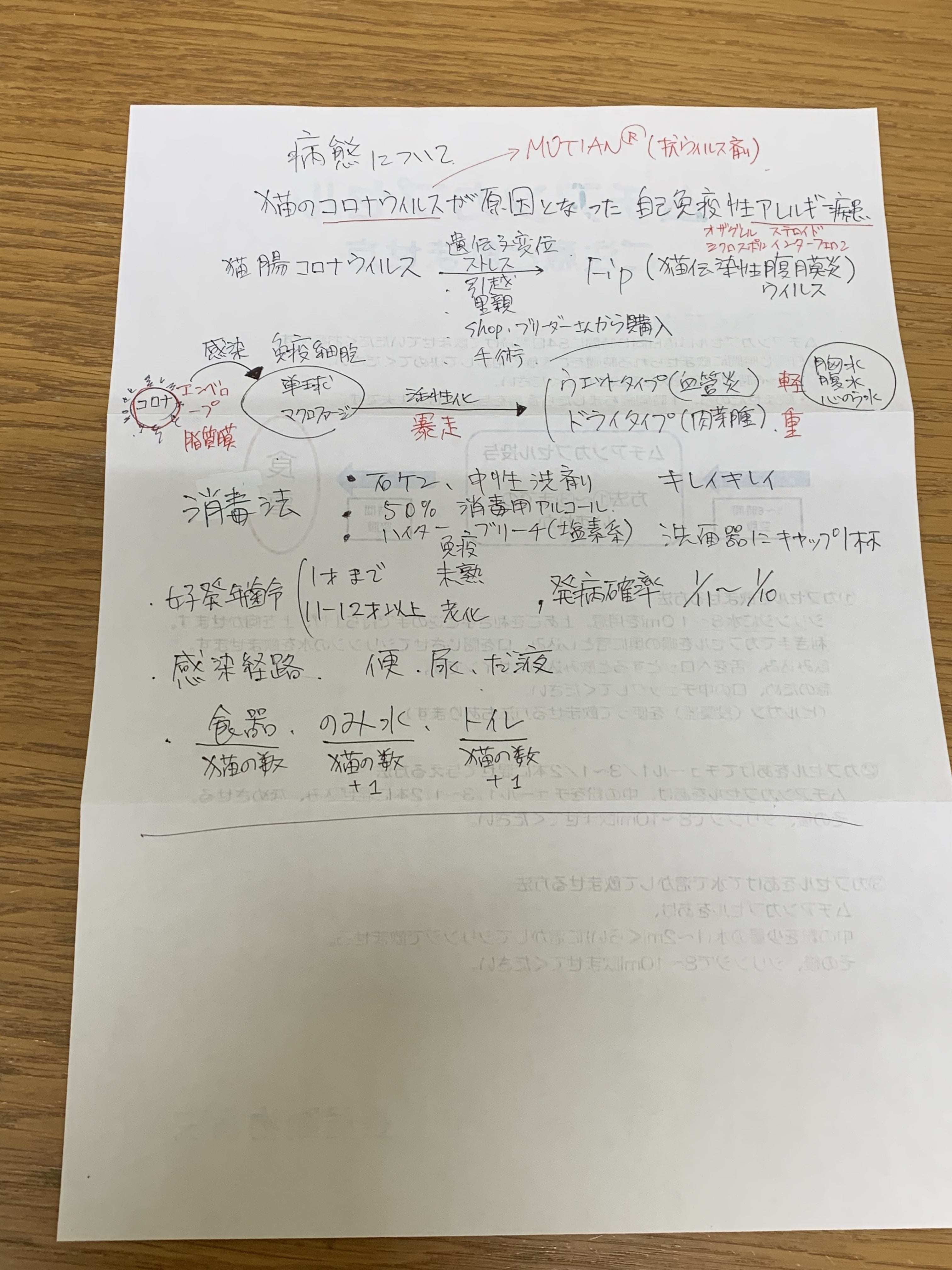この病気はコロナウイルスが原因で、何らかの原因でコロナウイルスが突然変異し、猫伝染性腹膜炎を起こす事も初めて知りました。