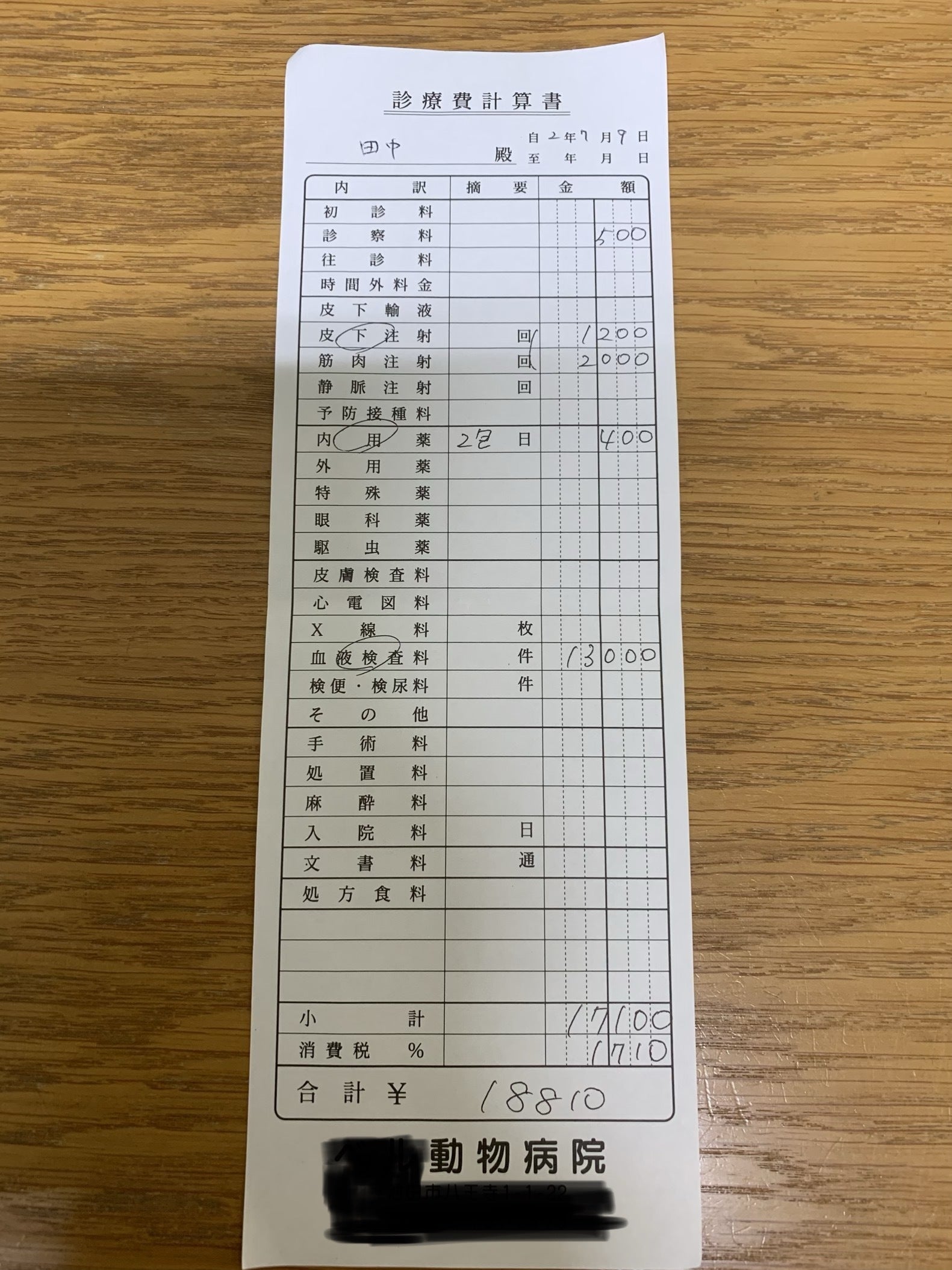 ご飯を食べなくなった日、かかりつけ医と協力病院での領収書