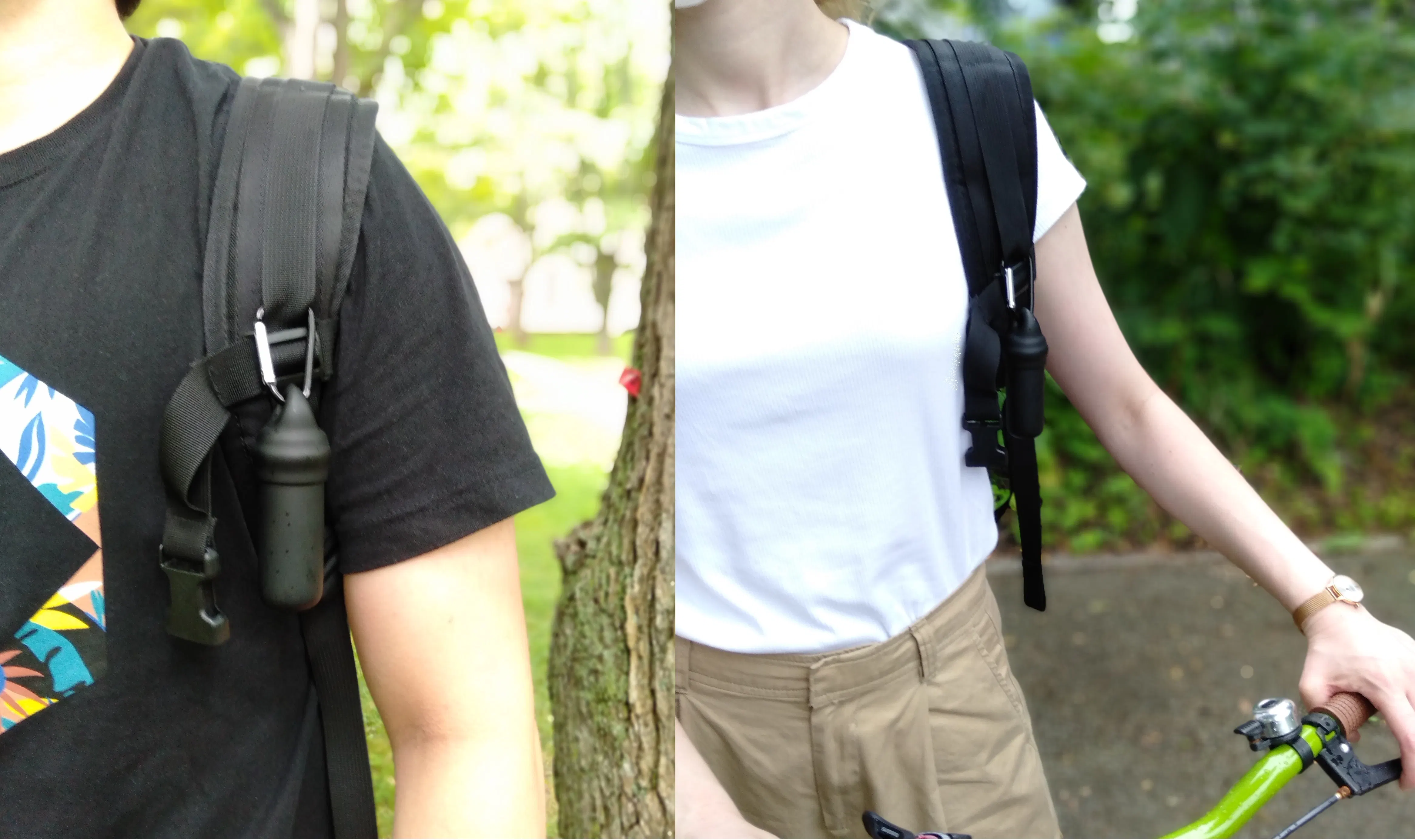 リュックに付けたり、キーケース、鞄の中、ポケットなどコンパクトに収納。