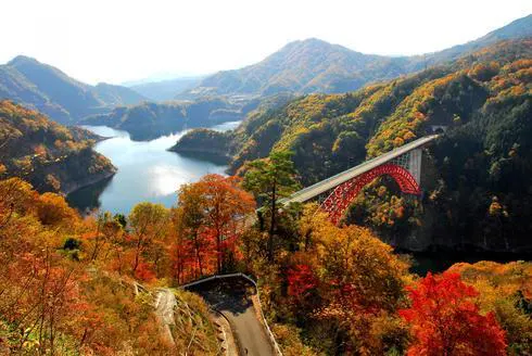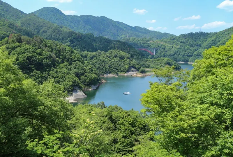 温井ダムは西日本一の規模を誇るアーチ式のダムです。環境に配慮された設計がされており、周辺は広葉樹の森が広がり、貴重な植物が多く、四季を通じて豊かな風景が楽しめます。