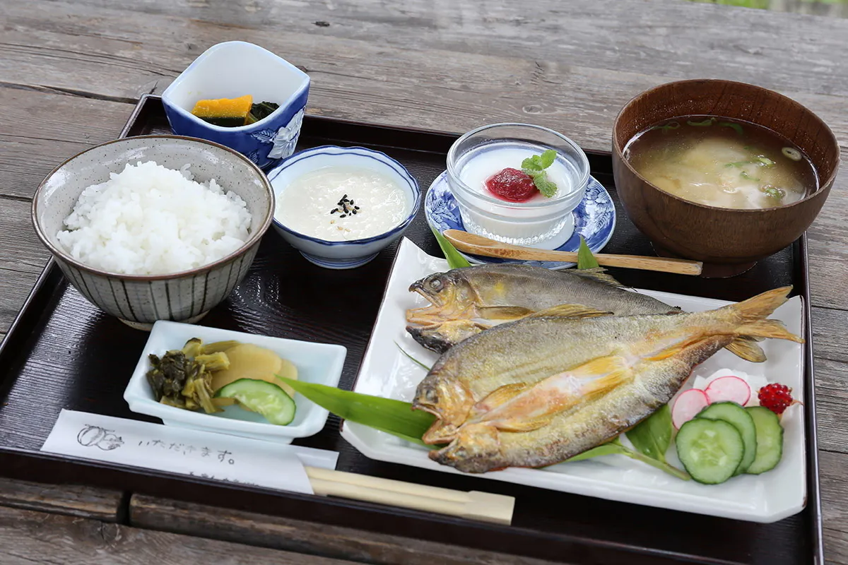 地元、太田川の鮎の一夜干しの定食です。脂の乗り、旨味が最高です。