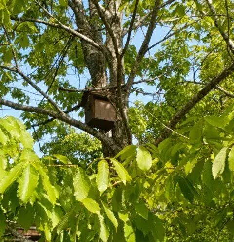 二男が6歳頃に植えたどんぐりが芽吹いて大きくなりました。巣箱には毎年シジュウガラが子育てにやってきます。