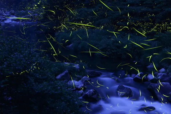温井ダム直下(鬼後)のホタルの乱舞は感動的です。