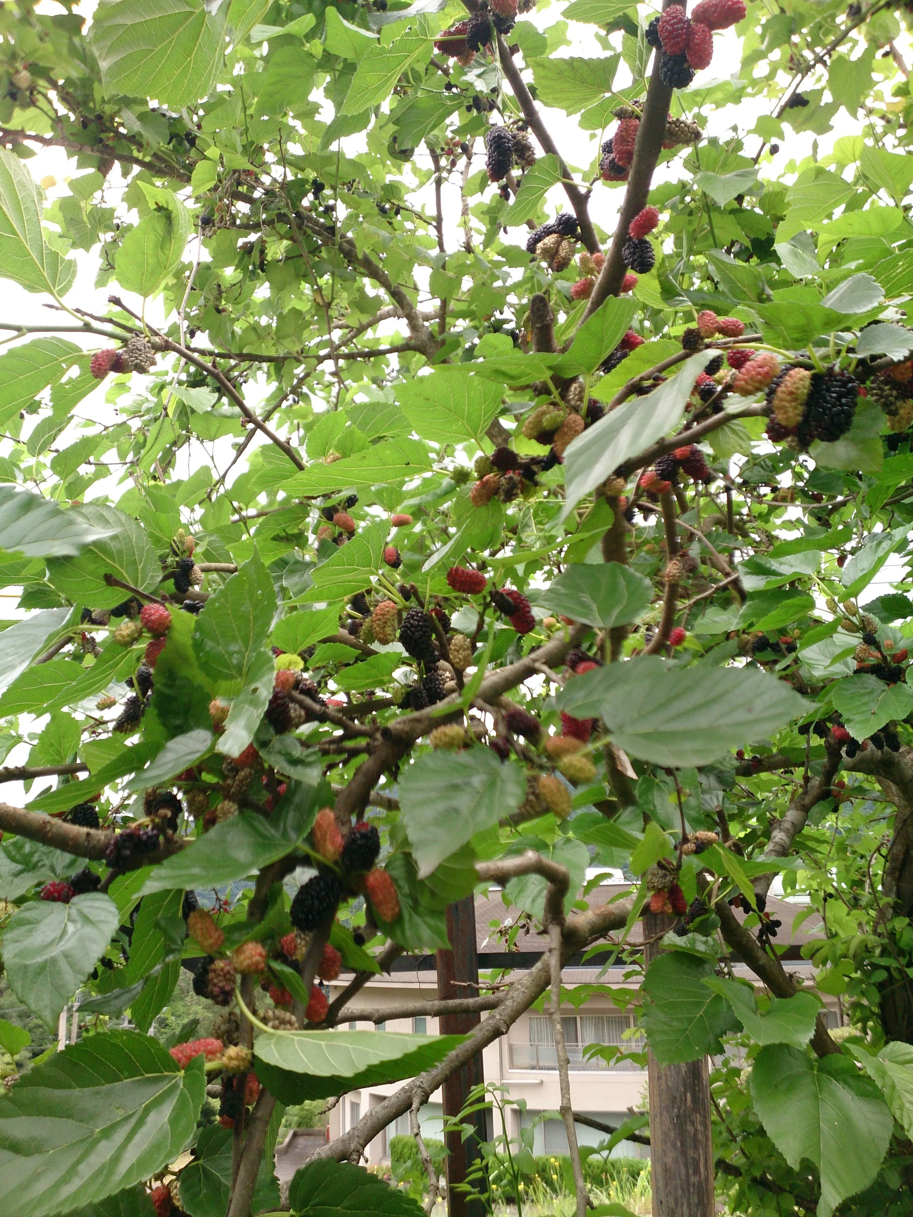 庭の「桑の実」を、ジュースやソーダや果実酒にします。