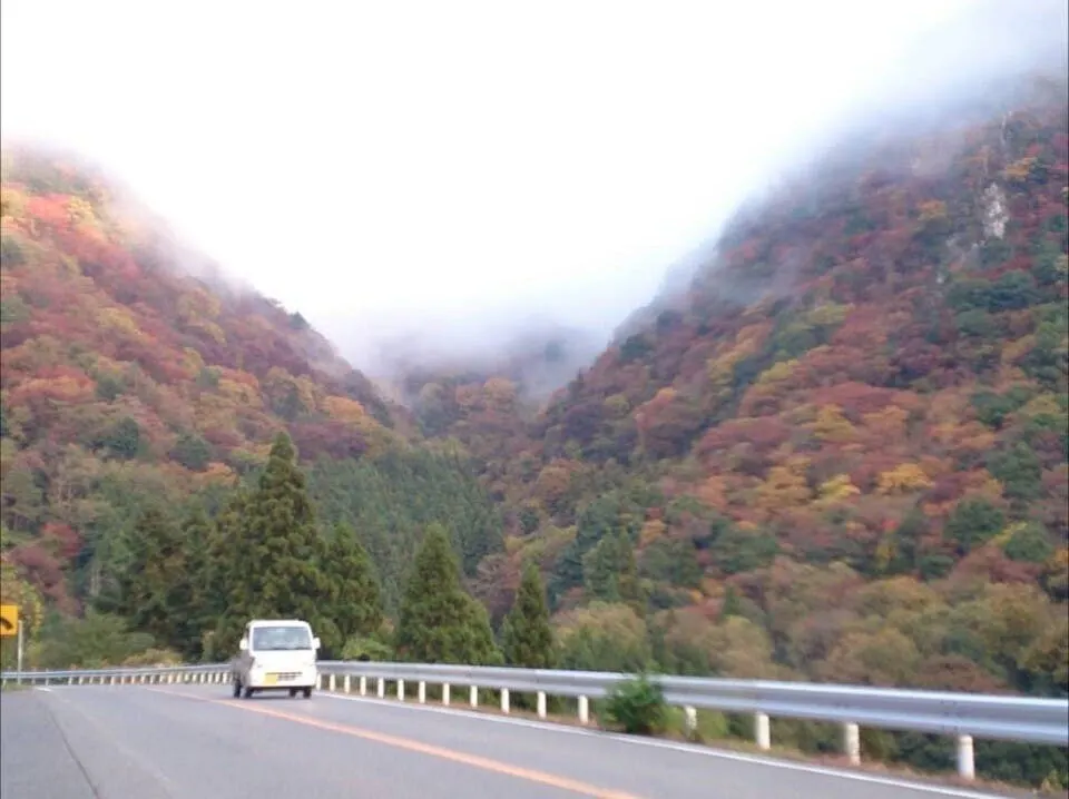温井ダムに向かう国道186号線沿いの紅葉は見事です。